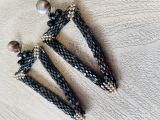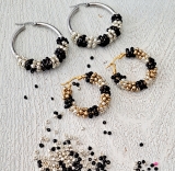Mindjuše od hirurškog čelika i japanskih staklenih perlica u crno-zlatnoj kombinaciji