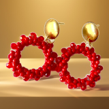 Mindjuše od hirurškog čelika i japanskih staklenih perlica u crvenoj boji