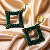 Mindjuše od japanskih staklenih perlica i hirurškog čelika u smaragdno zelenoj boji sa zlatnim detaljima