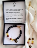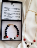 Komplet (narukvica i ogrlica) od hirurškog čelika i odgovarajućeg poludragog kamenja: hematit, jaspis, žad, malahit, vulkanska lava. Uz komplet i objašnjenje za svaki kamen