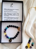Komplet (narukvica i ogrlica) od hirurškog čelika i odgovarajućeg poludragog kamenja: tirkiz, ametist, lapis lazuli, citrin, vulkanska lava. Uz komplet i objašnjenje za svaki poludragi kamen